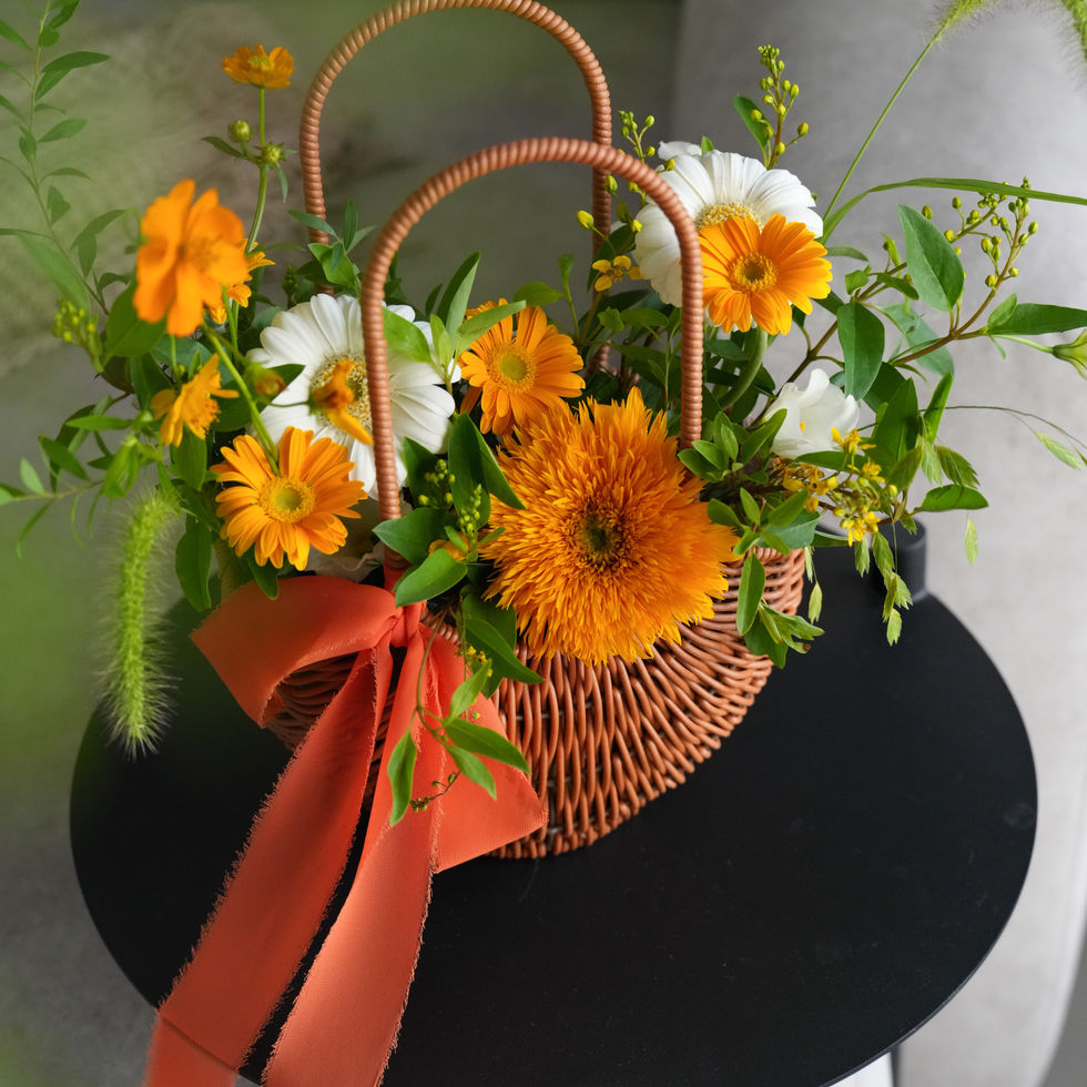 花材 : 泰迪向日葵、 非洲菊 、桔梗、 波斯菊、 狗尾草、 雪柳、其他葉材